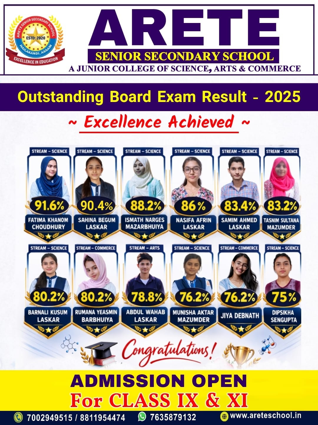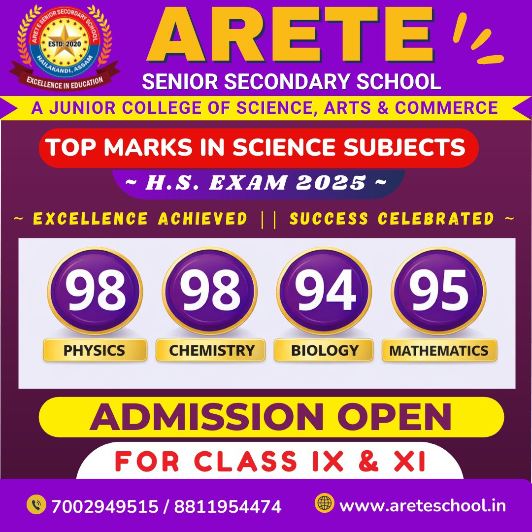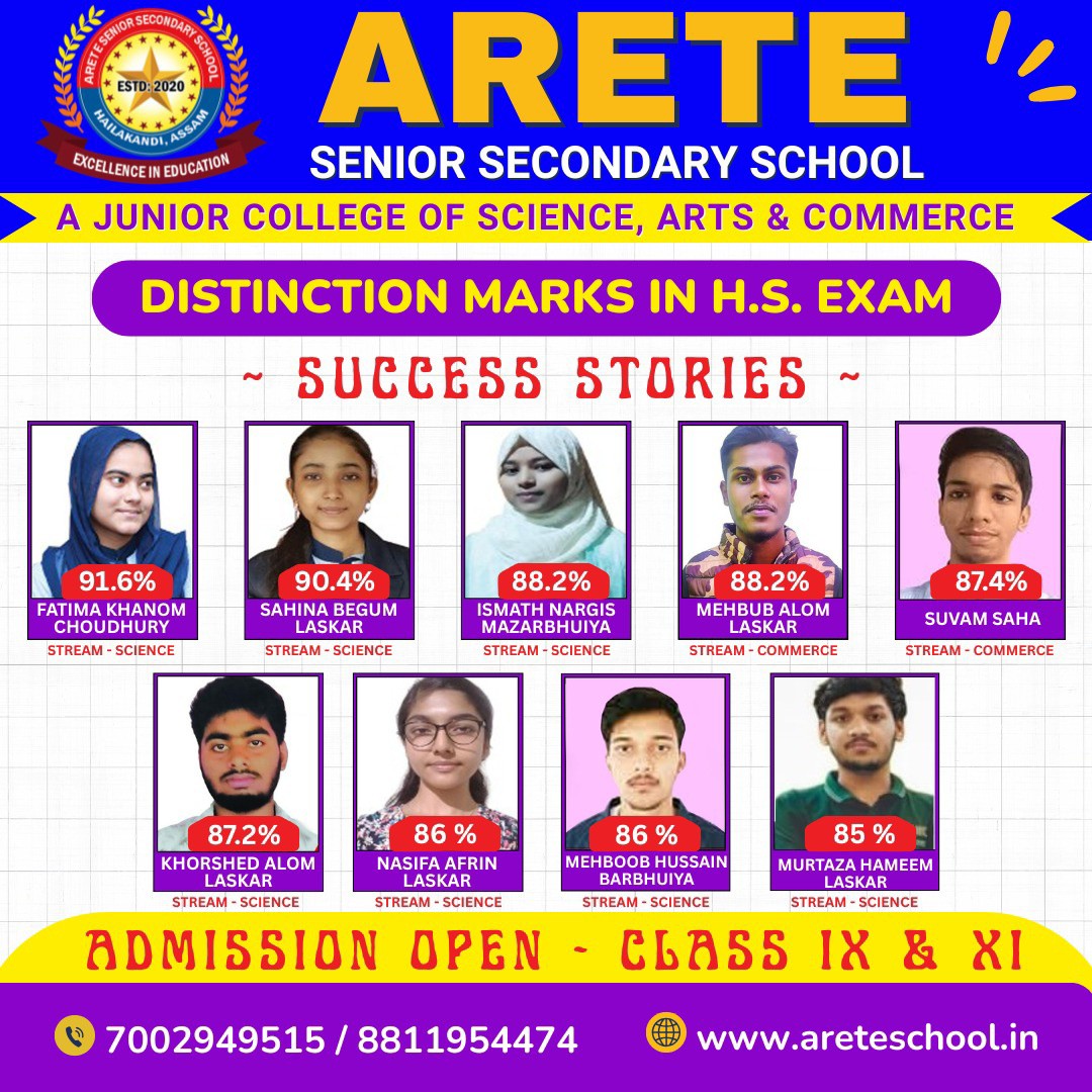 Arete Senior Secondary School located at the heart of the Hailakandi district is an institution established by Arete Educational Trust (AET) for ensuing Higher Secondary courses under Assam Higher Secondary Education Council (AHSEC). The education in Arete gives you a fantastic platform to explore everything that the latest information and technology has to offer. Arete has been developed by outstanding academic staffs with the input of passed out students of various institutes and prominent figures of different institutions. Our academic staffs are engaged in latest research activities that are transforming the world in which we live. So, you will be educated by the qualified and experienced academic staffs who are at the forefronts of their fields.
