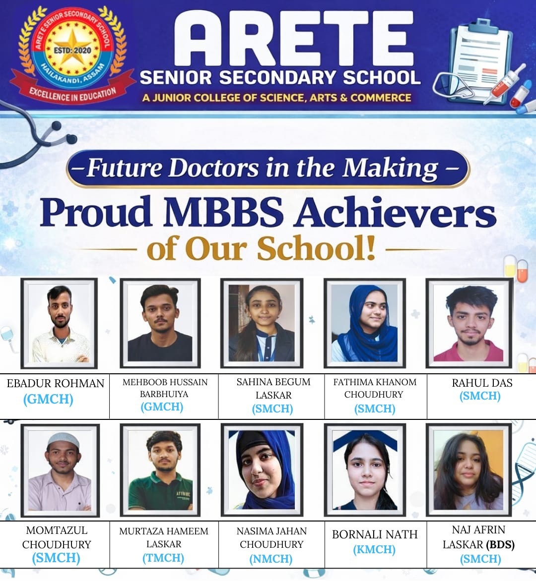 I feel proud and extremely confident to welcome you to the family of Arete Senior Secondary School, Hailakandi. Arete Senior Secondary School provides opportunity to each student to progress and experience success. We in Arete, follow a collaborative approach where the school, parents and teachers form a partnership and support each other through the child’s journey in the process of learning. With the rapid development and advancement of technology our teachers are well equipped to provide technology supported learning opportunities to the students through smart boards. We are proud of the fact that the teachers here have been empowered and better equipped to draw the attention of the students and create more effective learning environment. Participation in extracurricular activities, seminars and workshops are also encouraged along with the prescribed curriculum. The experiences that a learner undergoes within the school are invaluable and they go a long way in grooming the child, equipping him/her to face the challenges and shoulder the responsibilities that lie ahead. We in Arete focus at solving the problems at individual level by taking continuous feedback and providing remedial teaching. I encourage all to seize every opportunity that pervades and permeates our campus, to discover their talents and potentials and map their career paths.